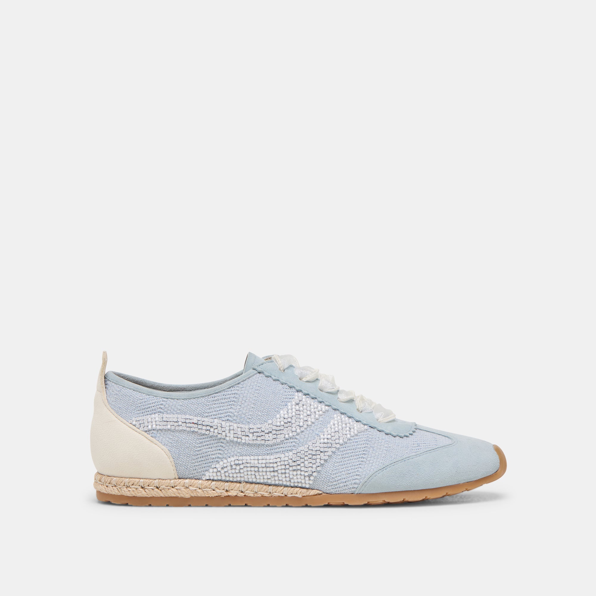 These sporty stunners are a dream to walk in. DREAM BEAD features a slim tennis silhouette that keeps you on-the go. and her burlap outer is dotted with swirling two-tone beads. sure to catch the light Grab these sporty staples natural or blue.